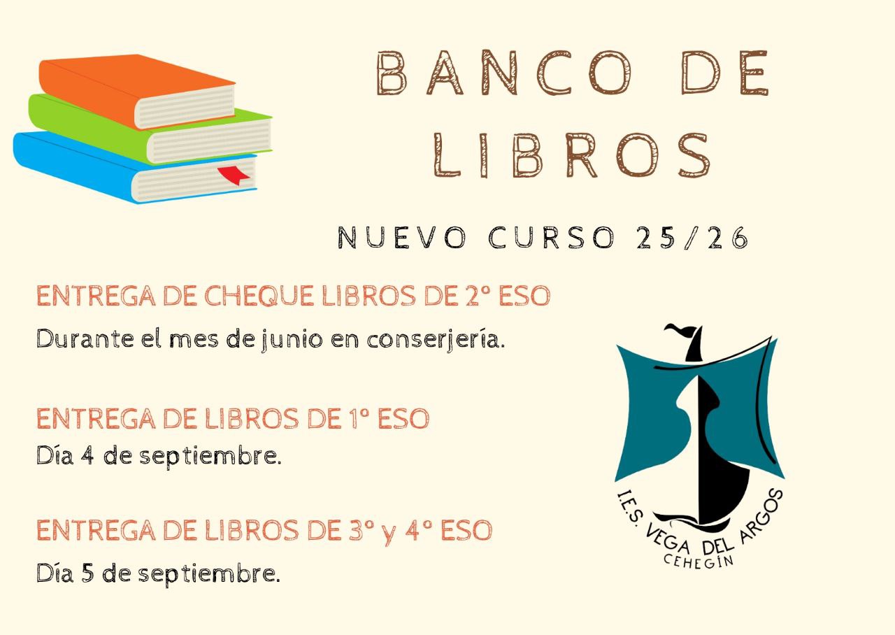 Banco de libros curso 25/26 Información de entrega de cheque-libros y libros - Listado de libros curso 2025/2026