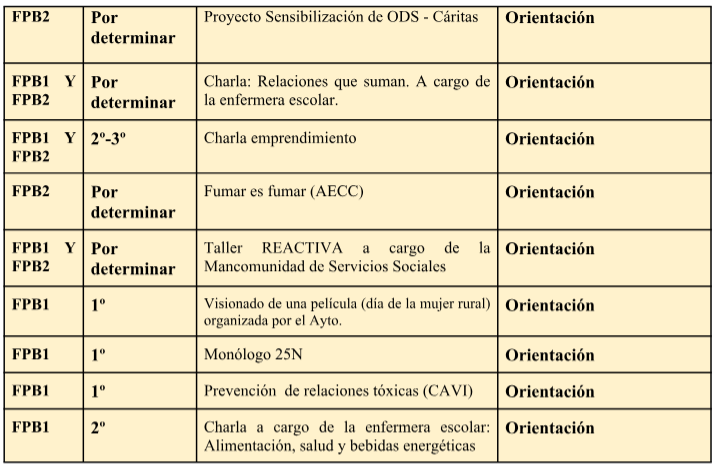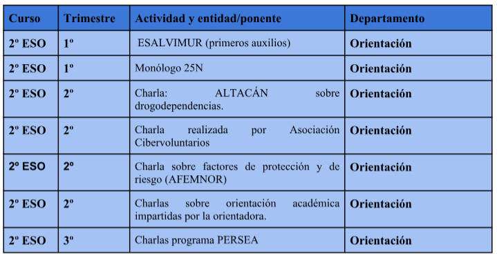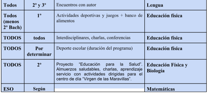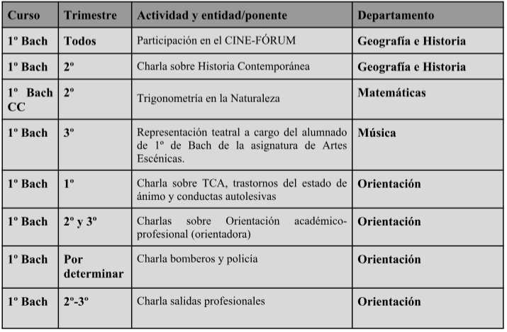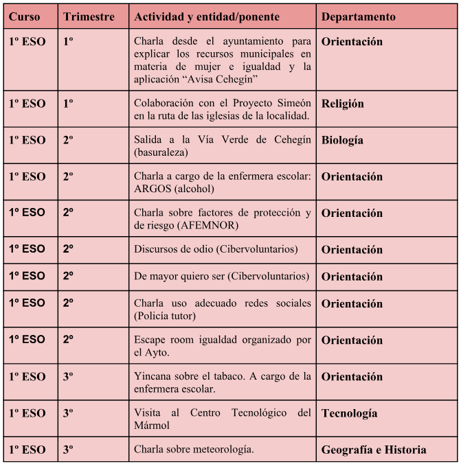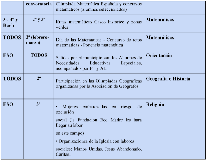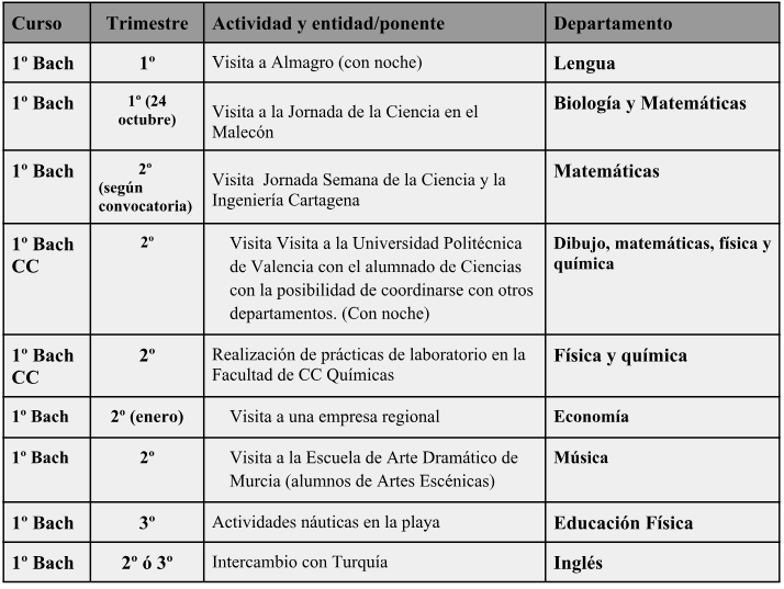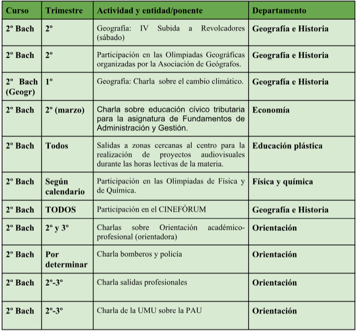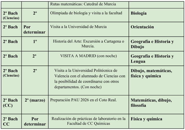 Actividades  que conllevan pérdida de clase, debido a que son actividades que, como mínimo, necesitan de  una mañana completa para su realización.