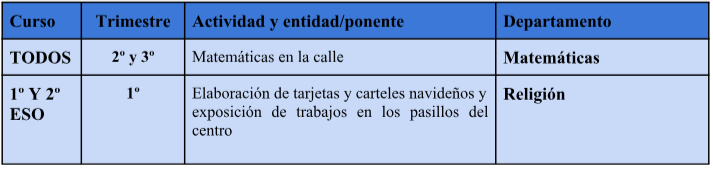 Actividades que no conllevan la pérdida completa de clases, ya que se realizan en el mismo municipio o en el centro.